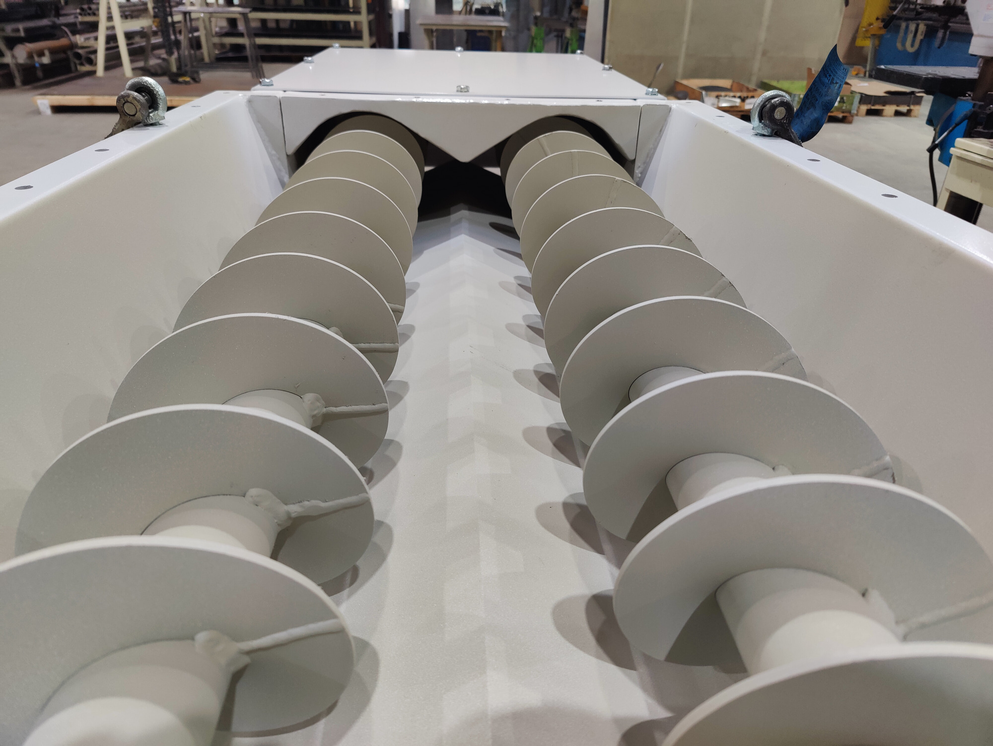 Trogkettenförderer ermöglichen einen ruhigen, gleichmäßigen Transport – ideal für längere Strecken oder schwerere Materialien. Schneckenförderer eignen sich hervorragend für kompakte Förderwege, Austragsprozesse oder steile Linienführungen. Rundbodenförderer bieten durch ihre Form den Vorteil einer besonders guten Restentleerung und eines ruhigen Materialflusses, komplett staubdicht geschlossen.