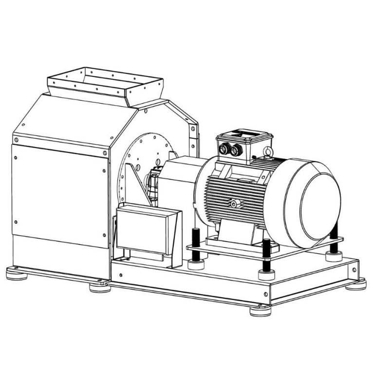 Dank ihrer robusten Bauweise und der verstellbaren Motorplatte kann die Mühle mit unterschiedlichen Antriebsgrößen betrieben werden – bis zu 545 kW Antriebsleistung sind möglich. Die 15 mm starken Platten sorgen dabei für höchste Stabilität und einen verschleißfreundlichen Betrieb selbst unter schwersten Bedingungen.