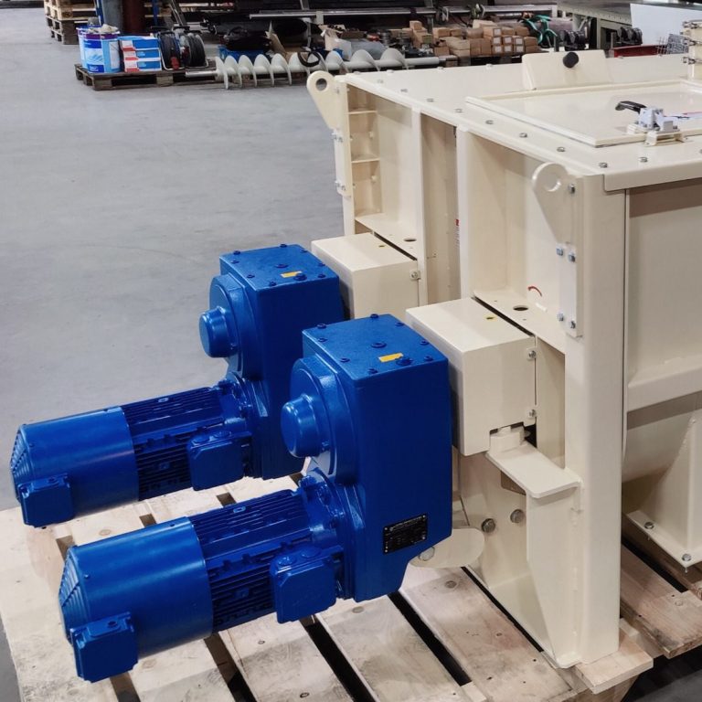 Die Mischer sind mit pneumatischen Auslaufschiebern ausgestattet, die eine schnelle und saubere Entleerung ermöglichen. Großzügige Wartungsöffnungen bieten optimale Zugänglichkeit für Reinigung und Service.